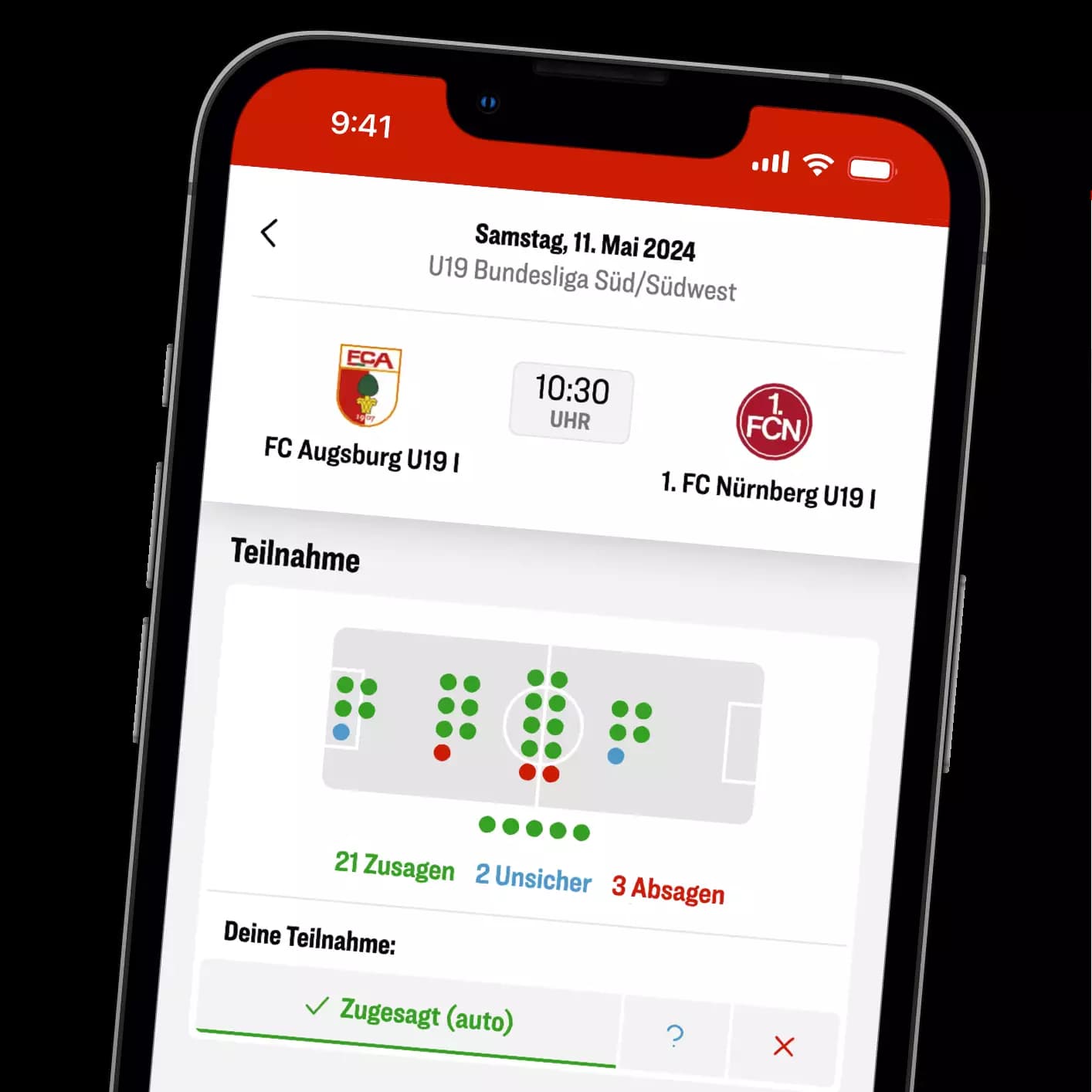 Unbedingt! Wir haben die App so konzipiert, dass sie zumindest im representativen Bereich auch mit relativ wenig Aufwand seitens des Vereins funktioniert. Beispielsweise fließen die Ergebnis- und Tabellendaten automatisch aus der kicker-Datenbank ein. Natürlich freuen wir uns, wenn du die Inhalte der App auf Stand hältst, indem du beispielsweise den Kader aktualisierst, Zu- oder Abgänge integrierst oder einen Liveticker pflegst. Zudem hast du die Möglichkeit, dir durch die Team-Orga-Funktionen viel Arbeit zu sparen. Letztlich bietet die App in der Kommunikation und Organisation sowohl mit Fans als auch intern mit den Spielerinnen und Spielern nur Vorteile.